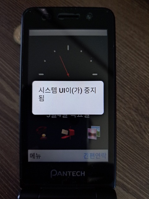 팬택 폴더 UI가 중지됨 핸드폰을 껐다 켜보기도 하고